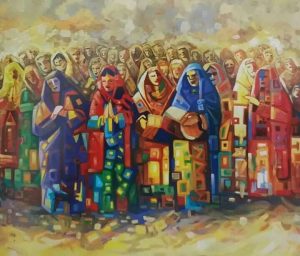 منكمشة على تساؤلاتها مثل دودة. تتساءل عن سبب هذا النفي القاسي؛ فهي لم تفارق القرية أكثر عن ثلاثة أيام منذ أن وُلِدت قبل تسعة وعشرين عامًا. ماذا فعلت ليحدث كل هذا؟ تريد إجابة لكنها حين تتأمل الطريق الممتد تدرك أنها تسير نحو مكان اختير لها بعناية. كلما ابتعدت، ضاق صدرها الشفيف نتيجة الفقد الذي بدا أبديًا، واتسعت مخيلتها التي اعتادت التسلّي بها، بفعل ما تراه حولها من صور ومشاهد جديدة. وحين دخلت شقة أخيها في الطابق السابع في إحدى العمارات في منطقة الخوض، تخيلت أنها منشورة مثل ثوب تقليدي شاحب يتأرجح على حبل غسيل متآكل؛ لذا بقيت لساعات تتحمل حالات الدوار الفجائية عاقدة حجابًا حول جبهتها، ولم تتهاون عن ربط مزالج نوافذ الغرفة المعلّقة، بسلك ثخين؛ فقد تموت في أية لحظة بضربةٍ واحدةٍ من منقار صقر جارح شاهدته يحلّق عاليًا بترصدٍ.